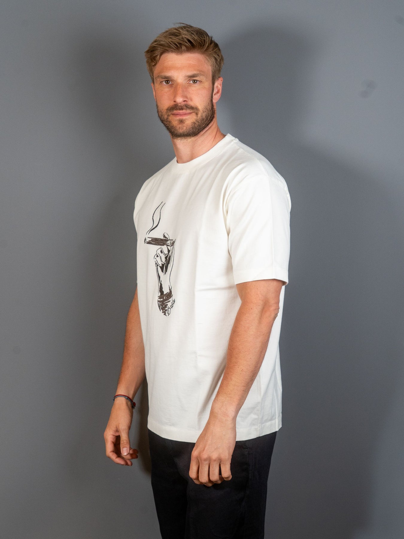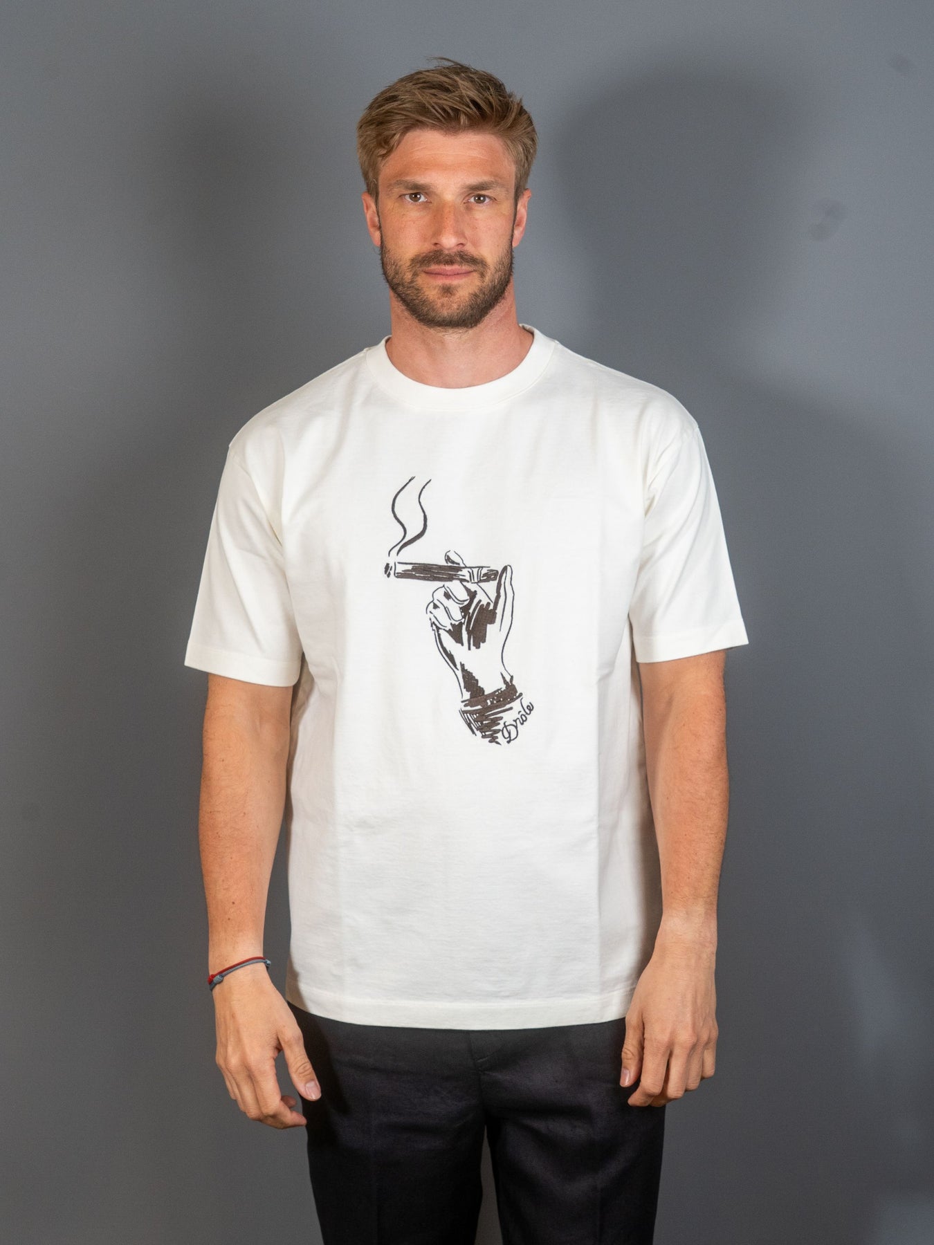Denne off-white dobbeltjersey-bomulds-t-shirt, der blev afsløret under forår/sommer 2026-showet "CUBA HEAT", indfanger ånden af et ulmende Havana i 1930'erne-1950'erne. "Cuba"-broderiet på brystet nikker til kollektionens tropiske manifest - hvor kolonial elegance møder gadefødt sensualitet.