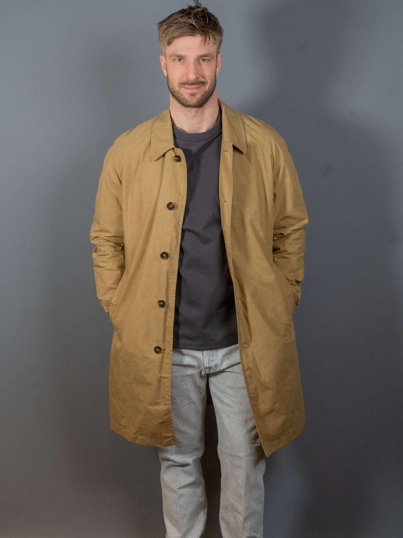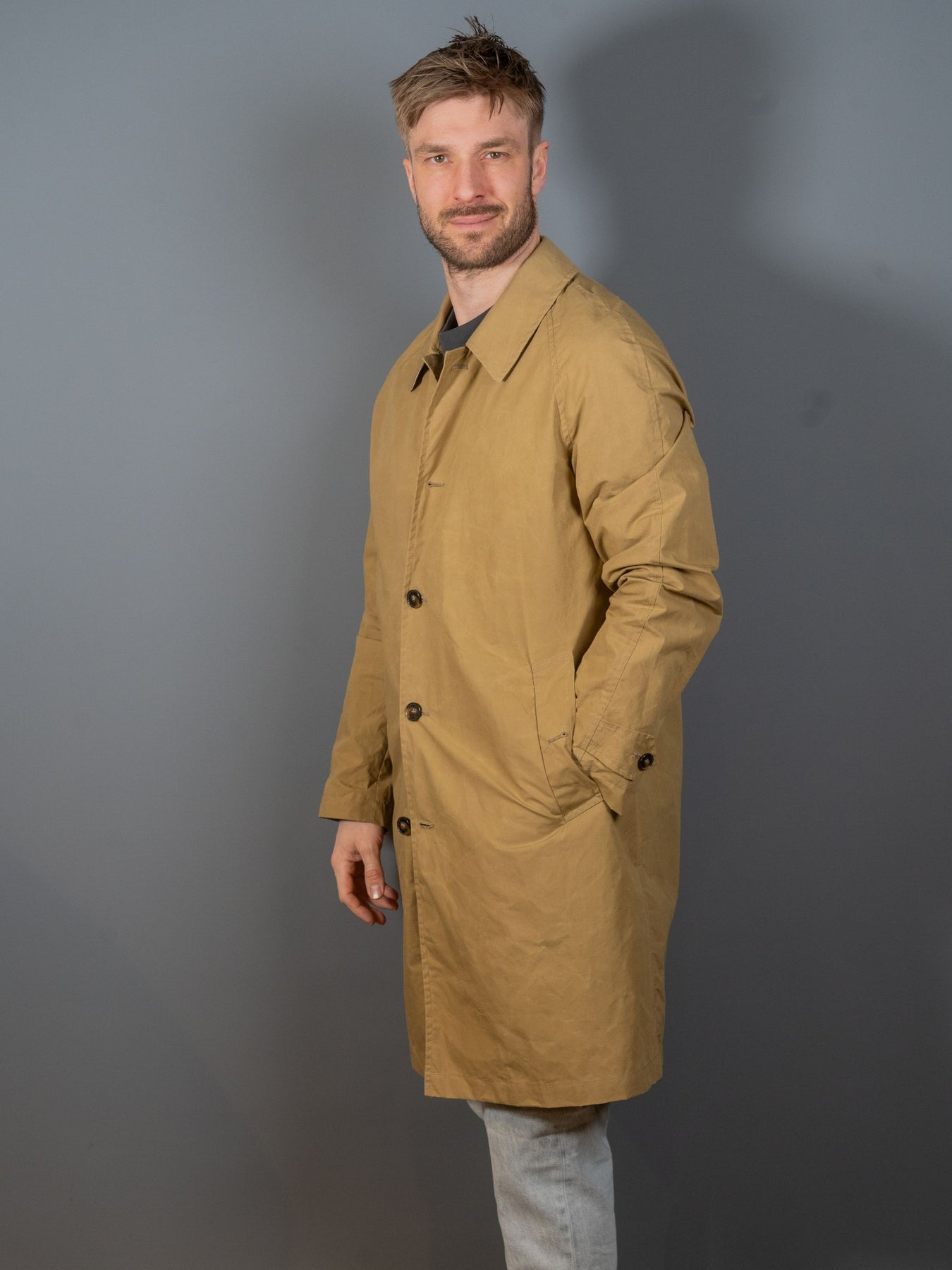 New Dean klassisk carcoat med hornknapslukning fra italienske L'Impermeabile.