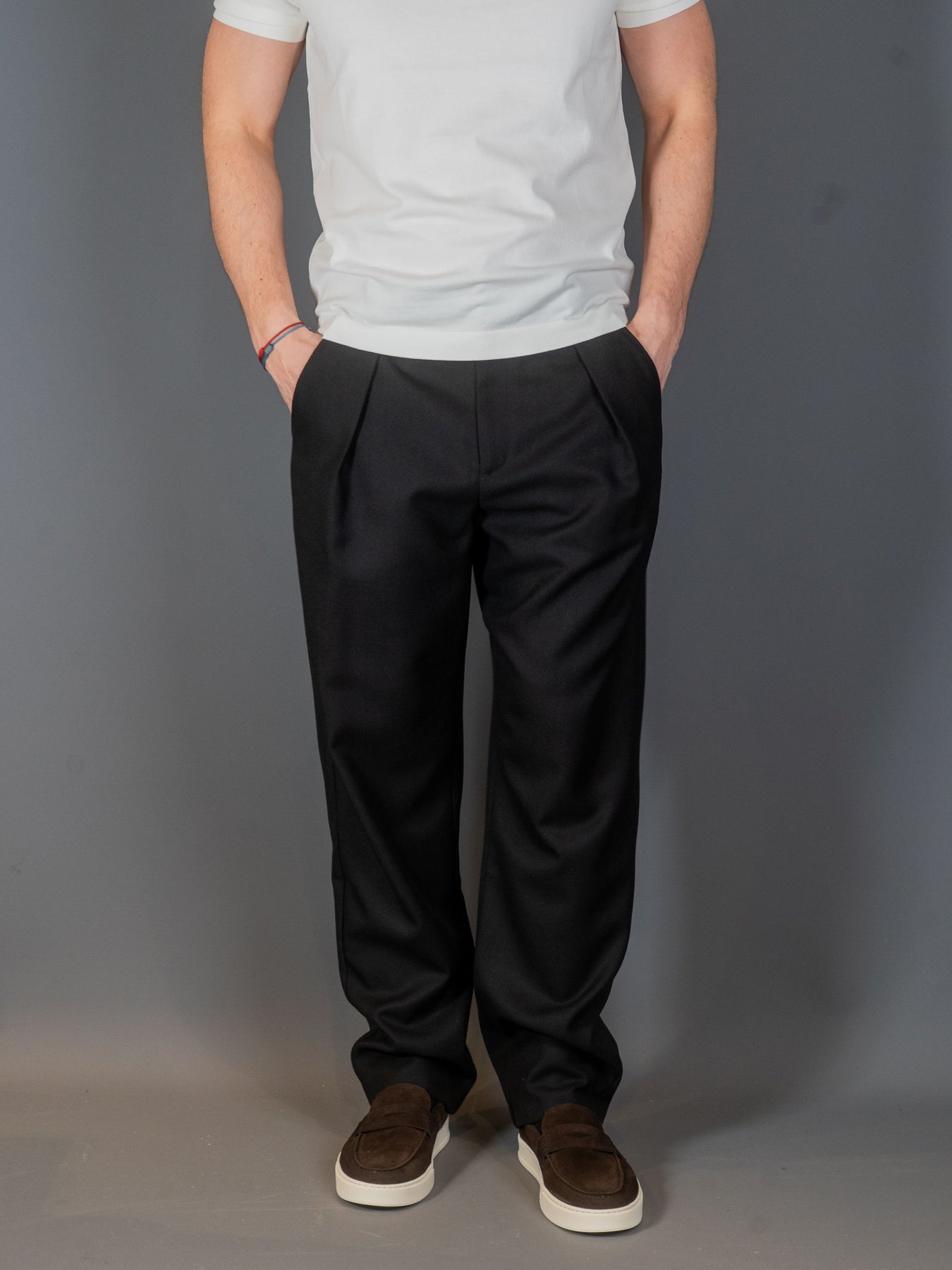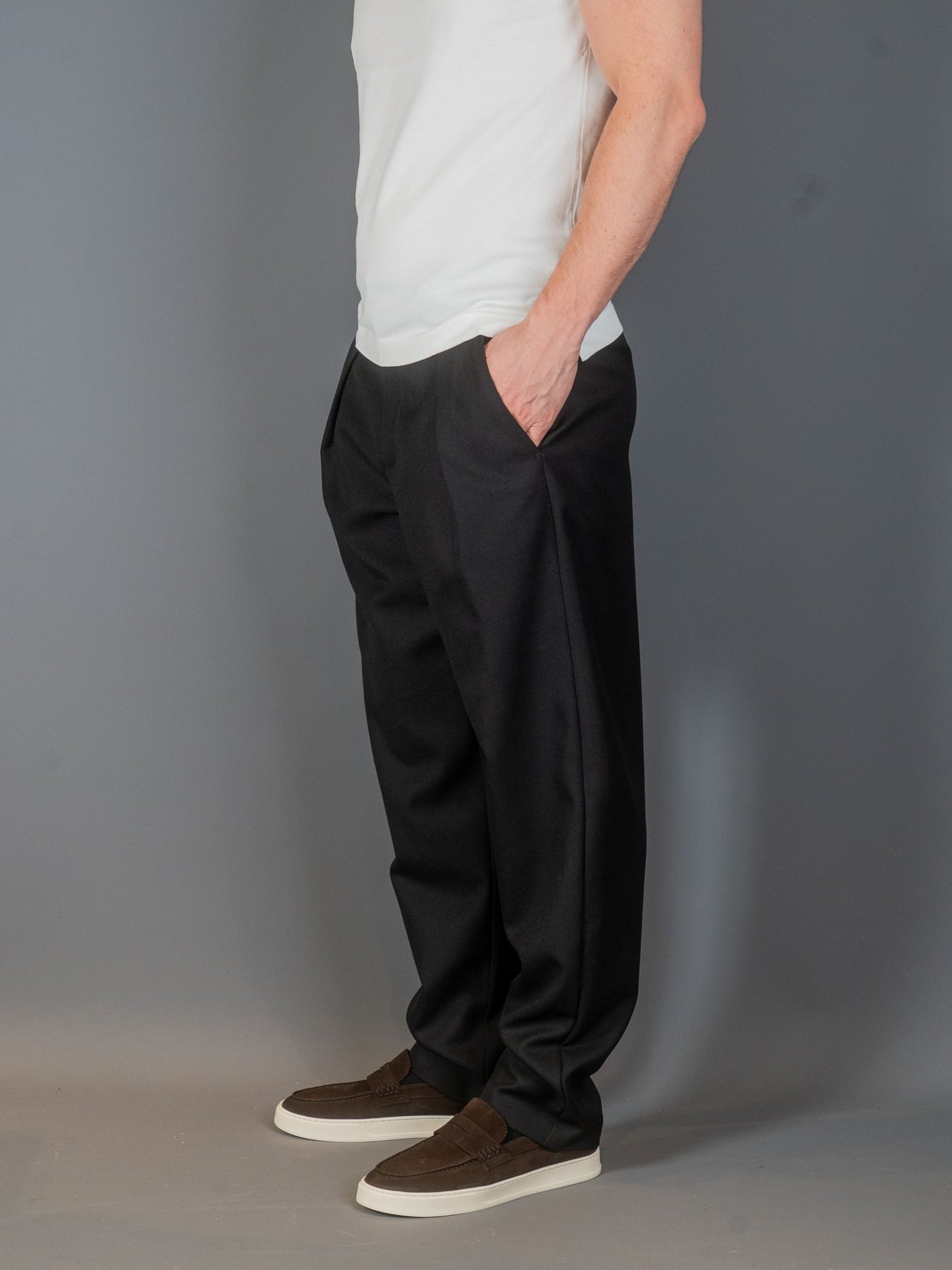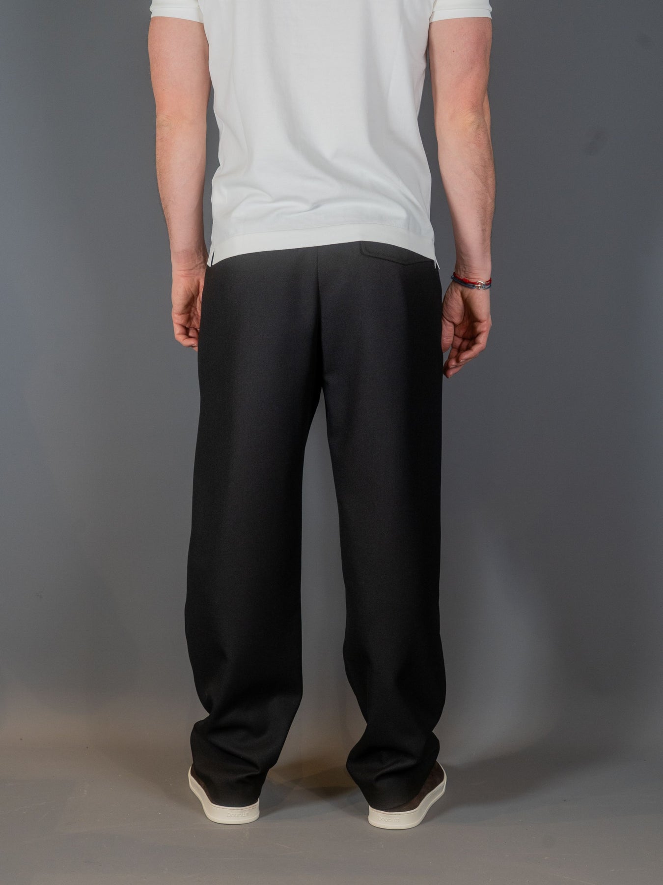 Renato buks fra A.P.C. med bred silouhette. Læg foran i taljen. Forskudt knaplukning. Lynlåsgylp. To sidelommer og en baglomme med klap.