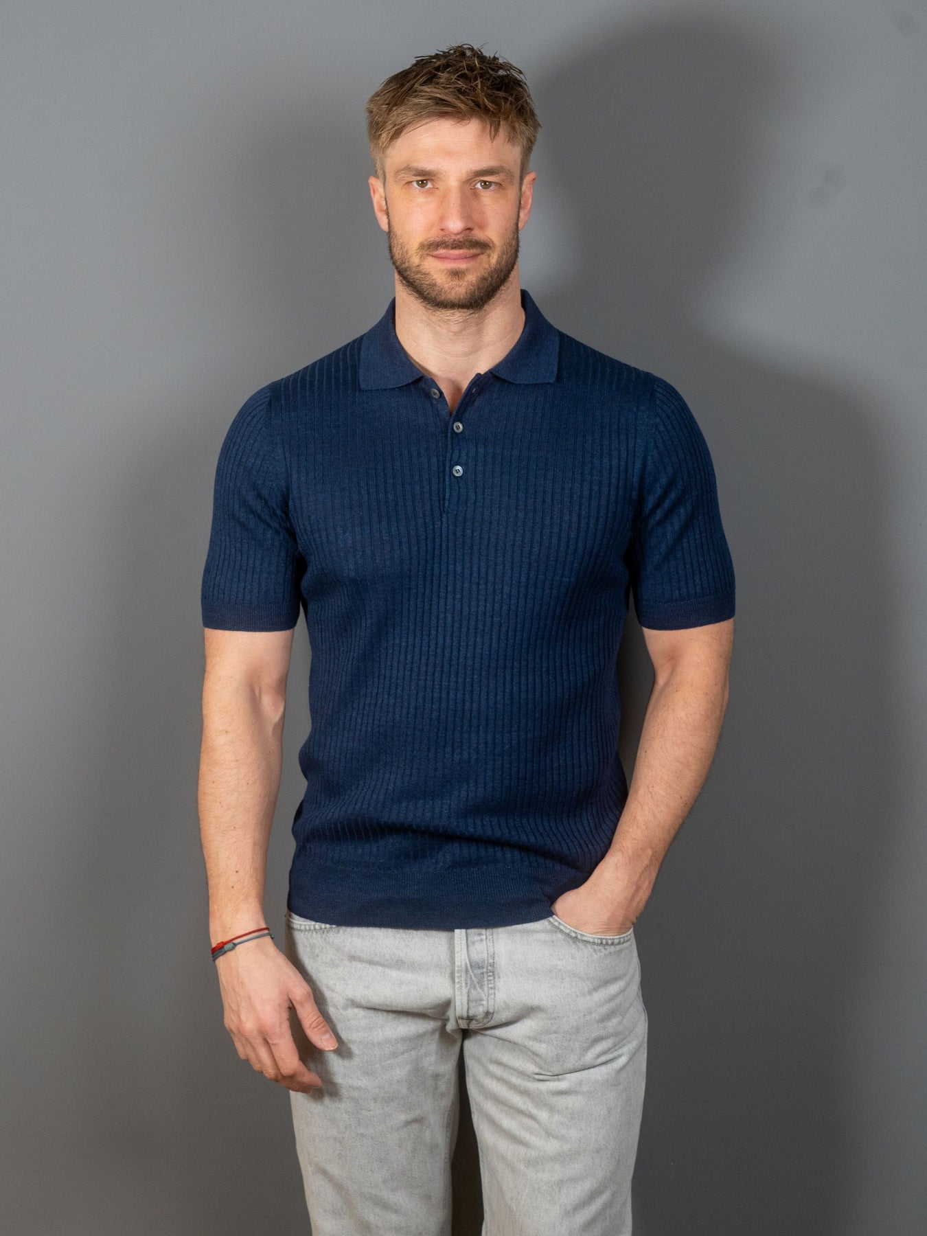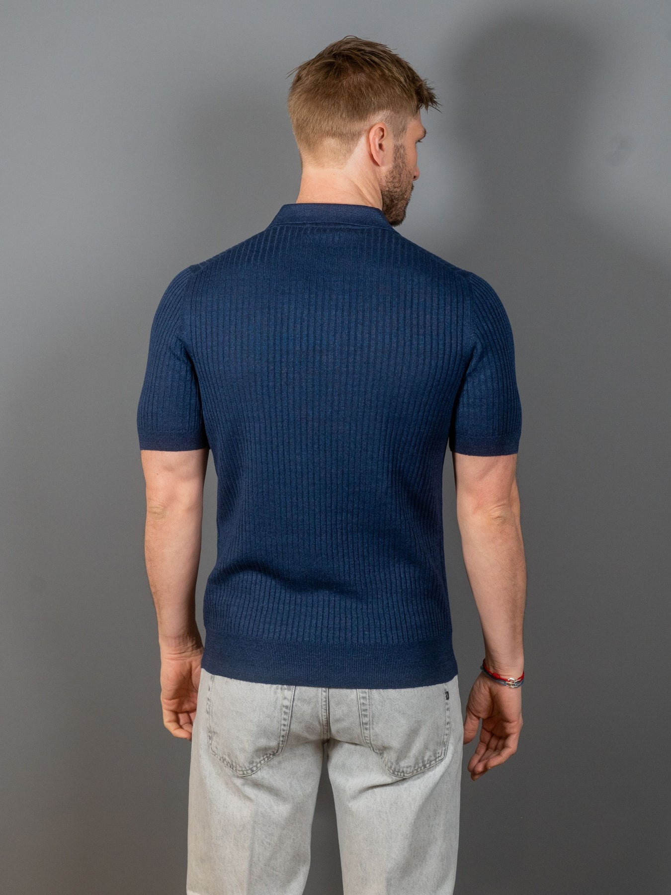 Ribbet poloshirt med korte ærmer i hør og bomuld fra italienske Gran Sasso. Et let stykke tøj, perfekt at kombinere med en strikjakke for et urbant look.