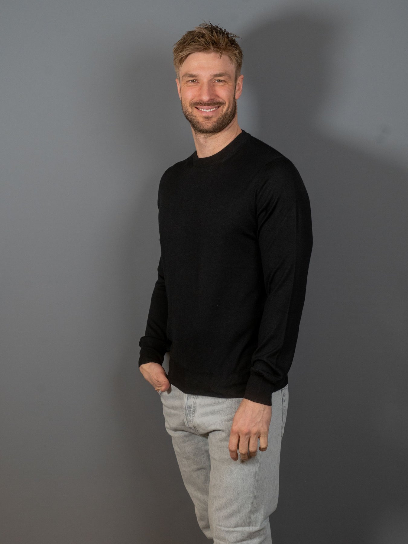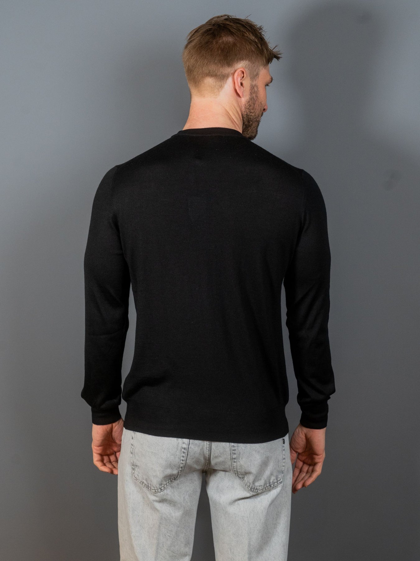 Strik i rund hals i uld, kashmir og silke. Strikken er fremstillet i en let kvaliet som gør den usædvanligt fin. Et alsidigt stykke tøj, ideelt til enhver lejlighed.