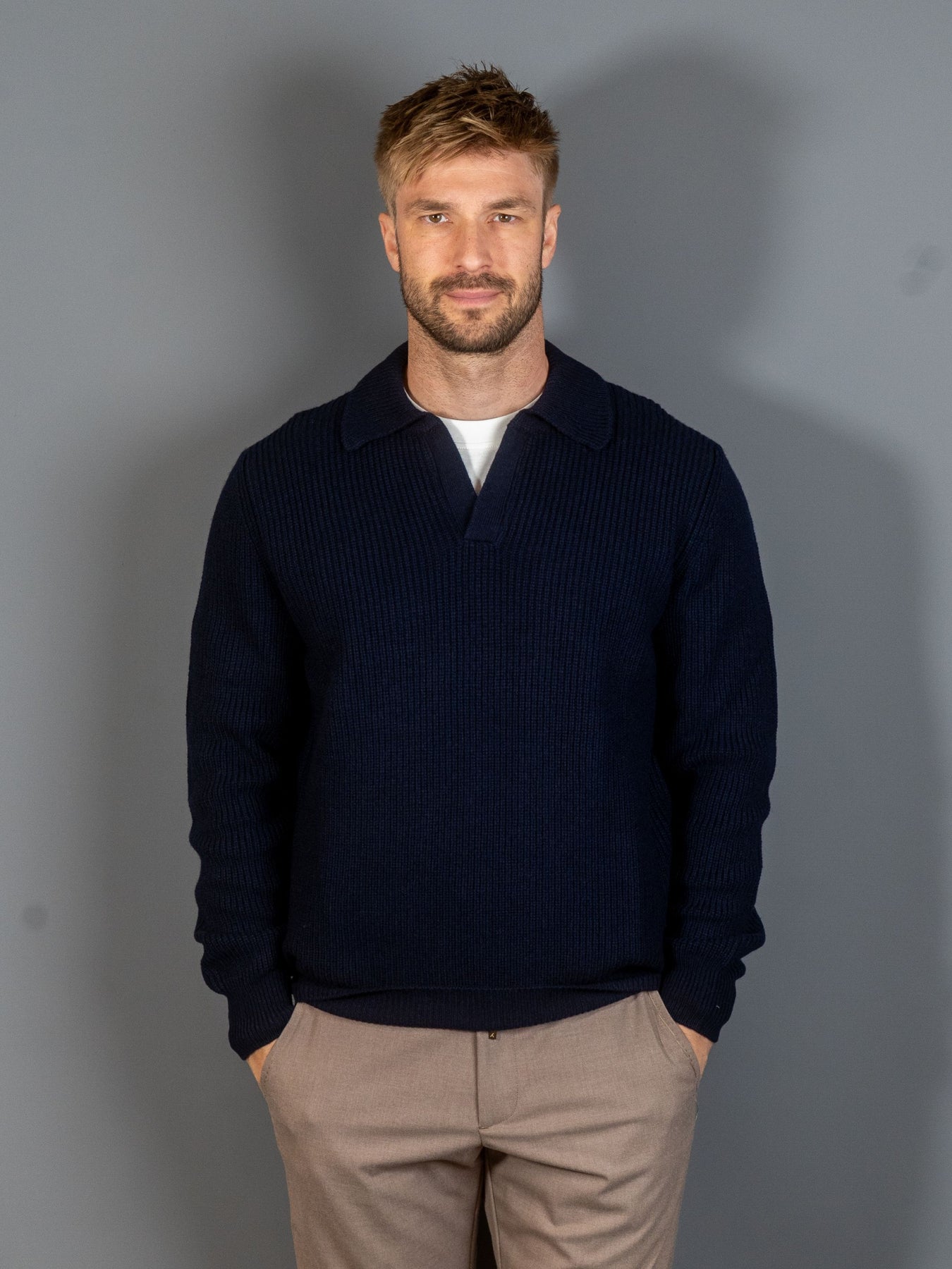 Rib Knit Skipper Polo Wool - Navy