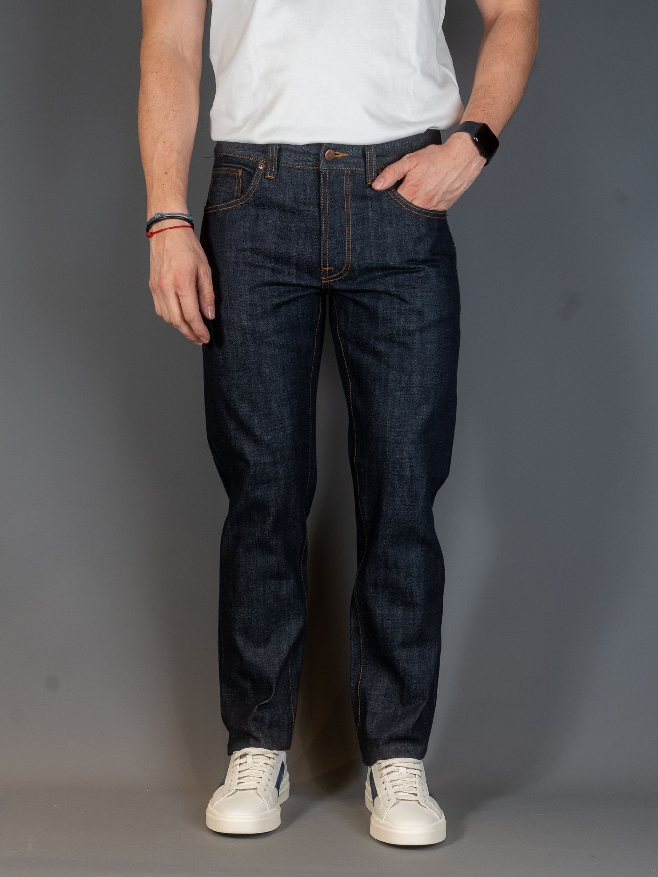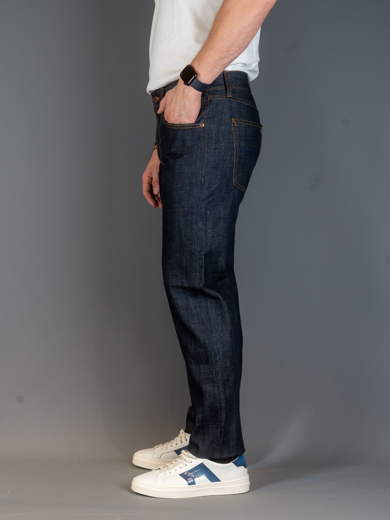 Denne 14,15 oz. tørre denim-storhed minder om en gammel denim i 50'er-stil. Tro mod historien er den lavet af ringspundne kæde- og skudgarner med uregelmæssig tykkelse, som det ofte var tilfældet dengang med arbejdstøj. Også tro mod dens arv er den mørke, men ikke sortlige, indigo-kædetråd, der er farvet i ren indigo.