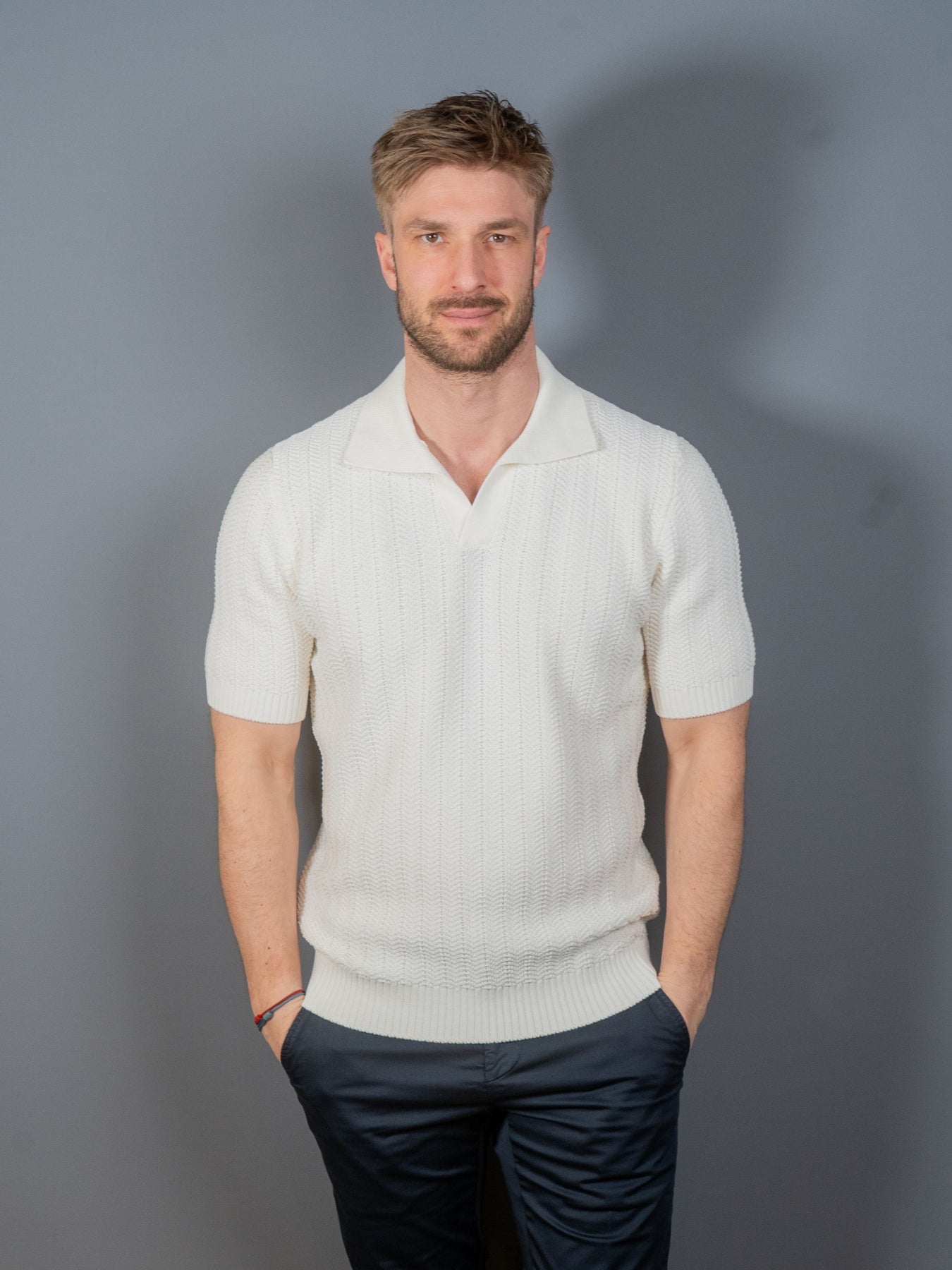 Grovstrikket polo med åben krave fra italienske Gran Sasso.
