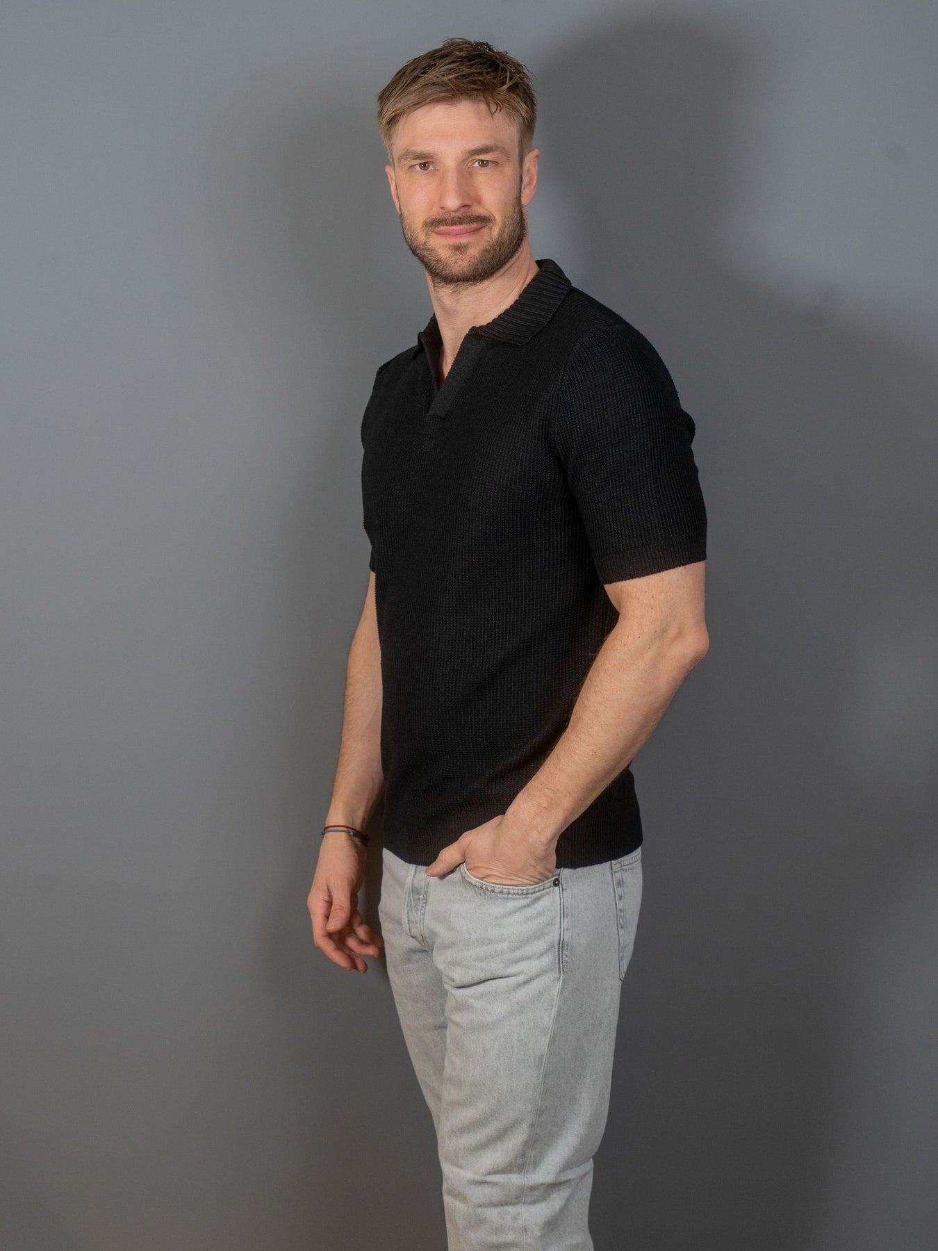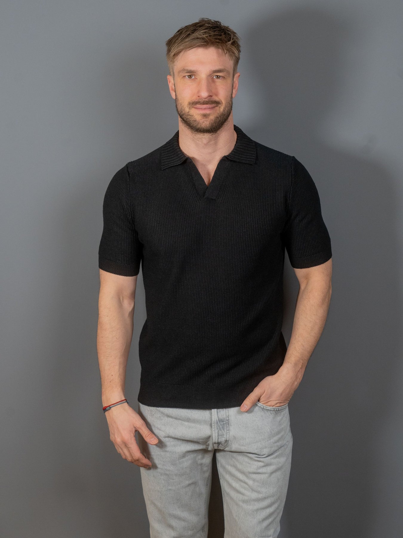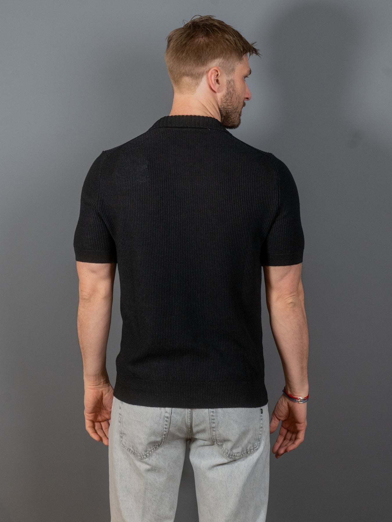 Kortærmet polotrøje med struktur fra italienske Gran Sasso.